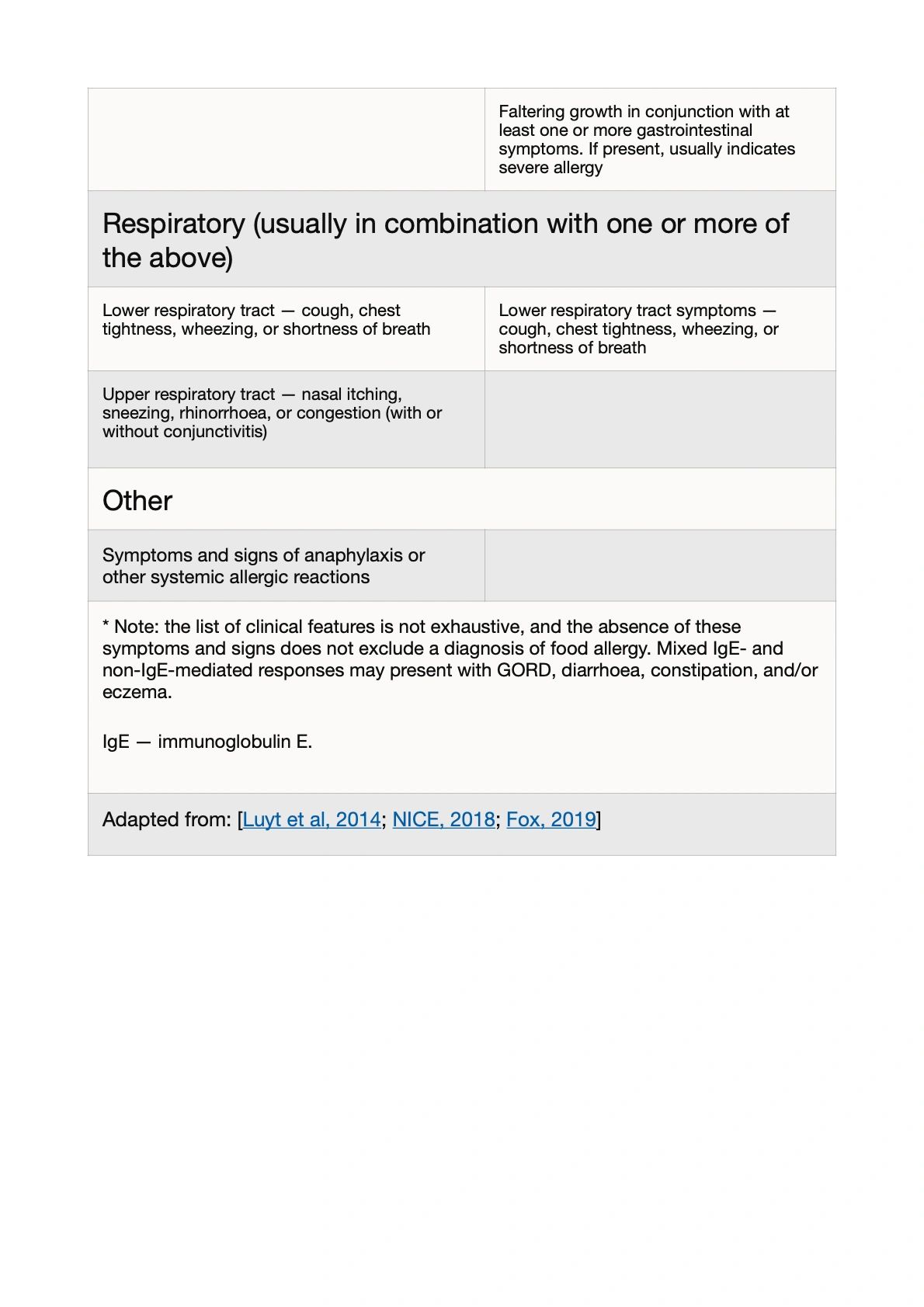 Allergy focussed history